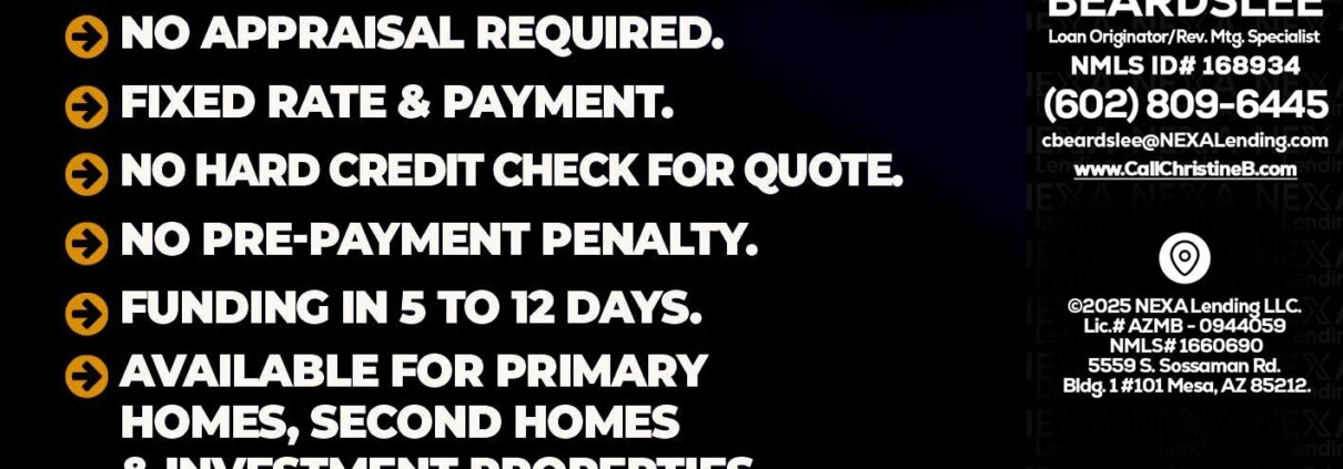 Hi, my name is Christine Beardslee. I’m a Loan Officer with NEXA Lending LLC., offering personalized mortgage solutions, fast customized quotes, great rates and service with integrity.
