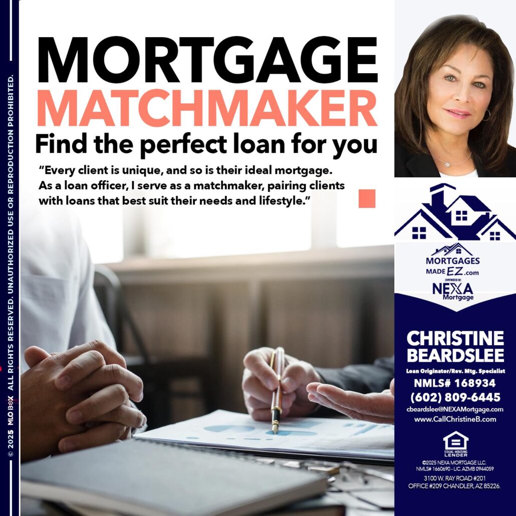 Hi, my name is Christine Beardslee. I’m a Loan Officer with NEXA Mortgage LLC., offering personalized mortgage solutions, fast customized quotes, great rates and service with integrity.