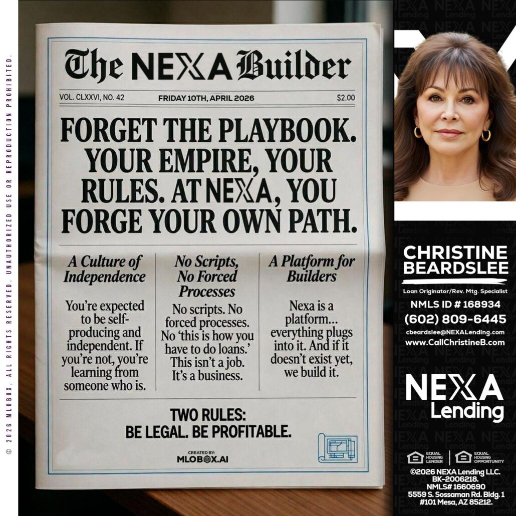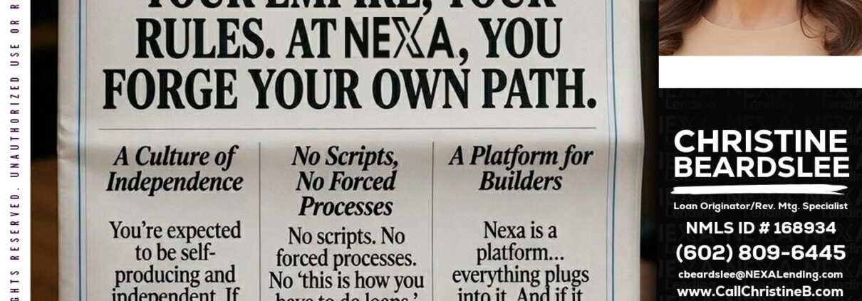 Hi, my name is Christine Beardslee. I’m a Loan Officer with NEXA Lending LLC., offering personalized mortgage solutions, fast customized quotes, great rates and service with integrity.