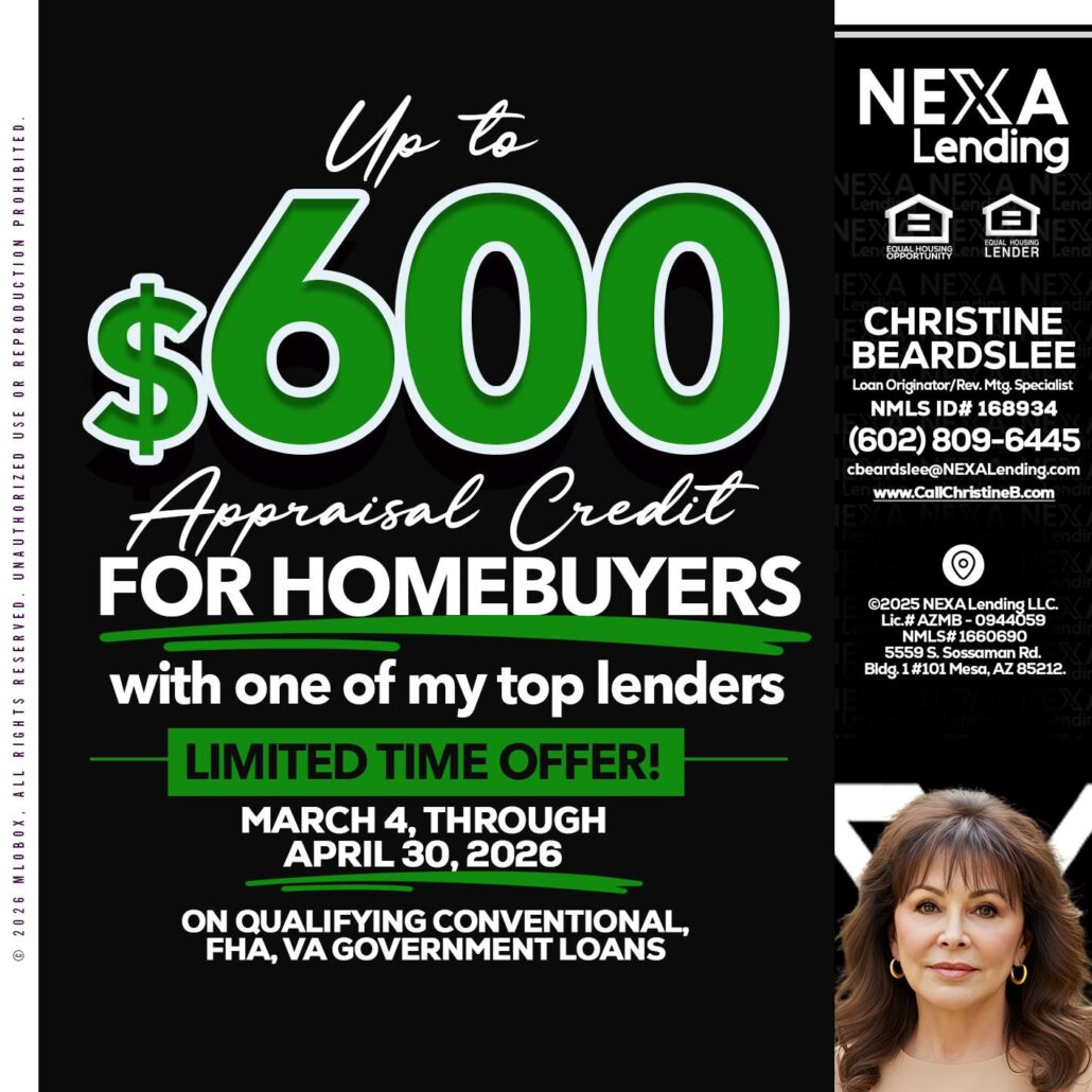 Hi, my name is Christine Beardslee. I’m a Loan Officer with NEXA Lending LLC., offering personalized mortgage solutions, fast customized quotes, great rates and service with integrity.