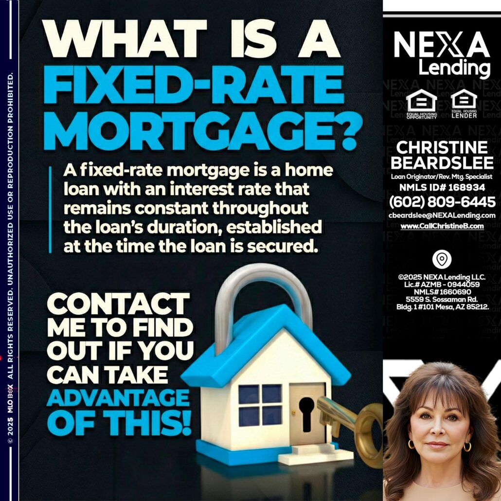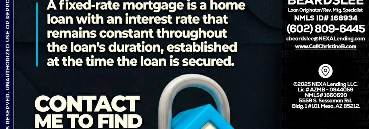WHAT IS  A FIXED - Christine Beardslee -MLO/Executive Partner/National Recruiter/Faster/Easier/Better RatesHi, my name is Christine Beardslee. I’m a Loan Officer with NEXA Lending LLC., offering personalized mortgage solutions, fast customized quotes, great rates and service with integrity.